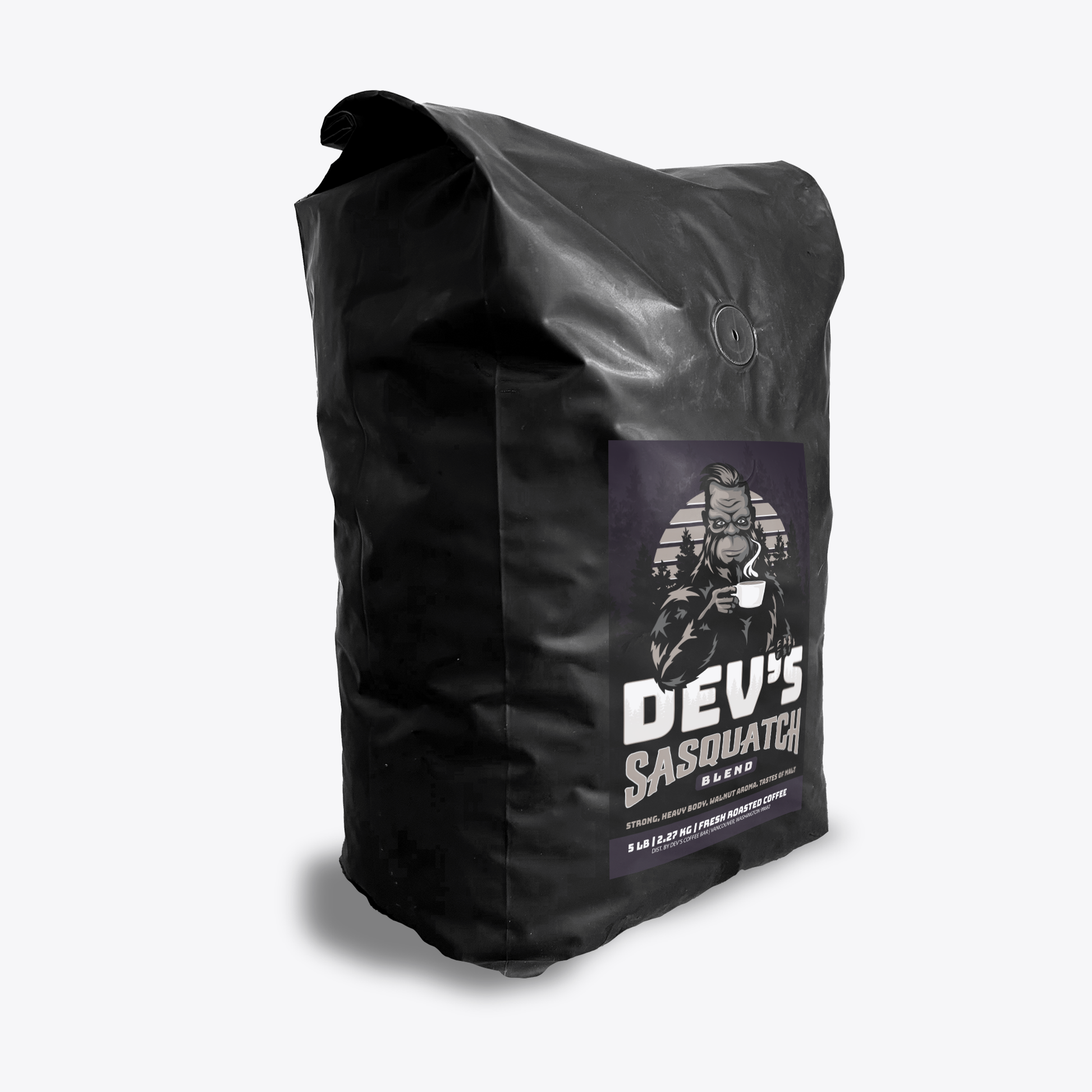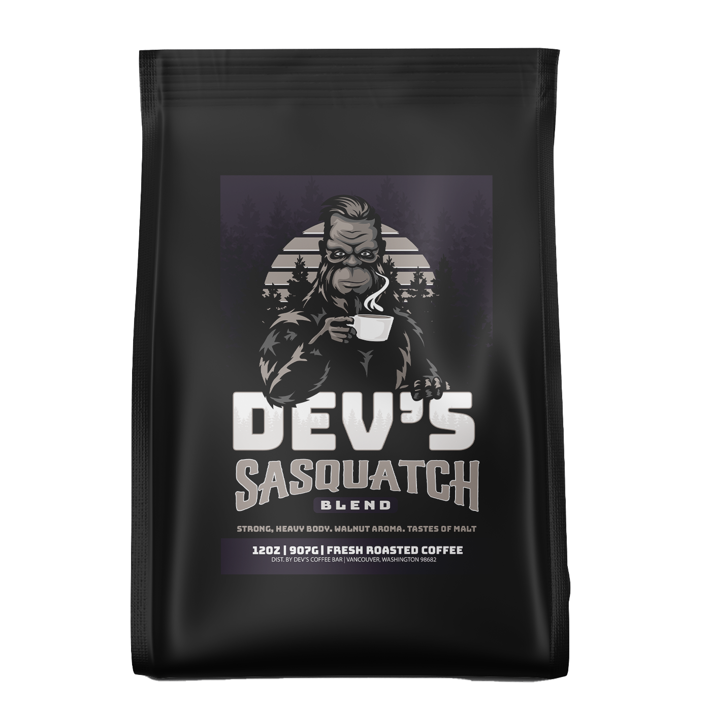 Dev's Sasquatch Blend is the perfect middle ground between a light and a dark roast. This blend packs the boldness of a dark roast, while maintaining the delicate flavor and richness of a light roast. If your unsure of where to start, this is the perfect place to meet both ends of the spectrum!